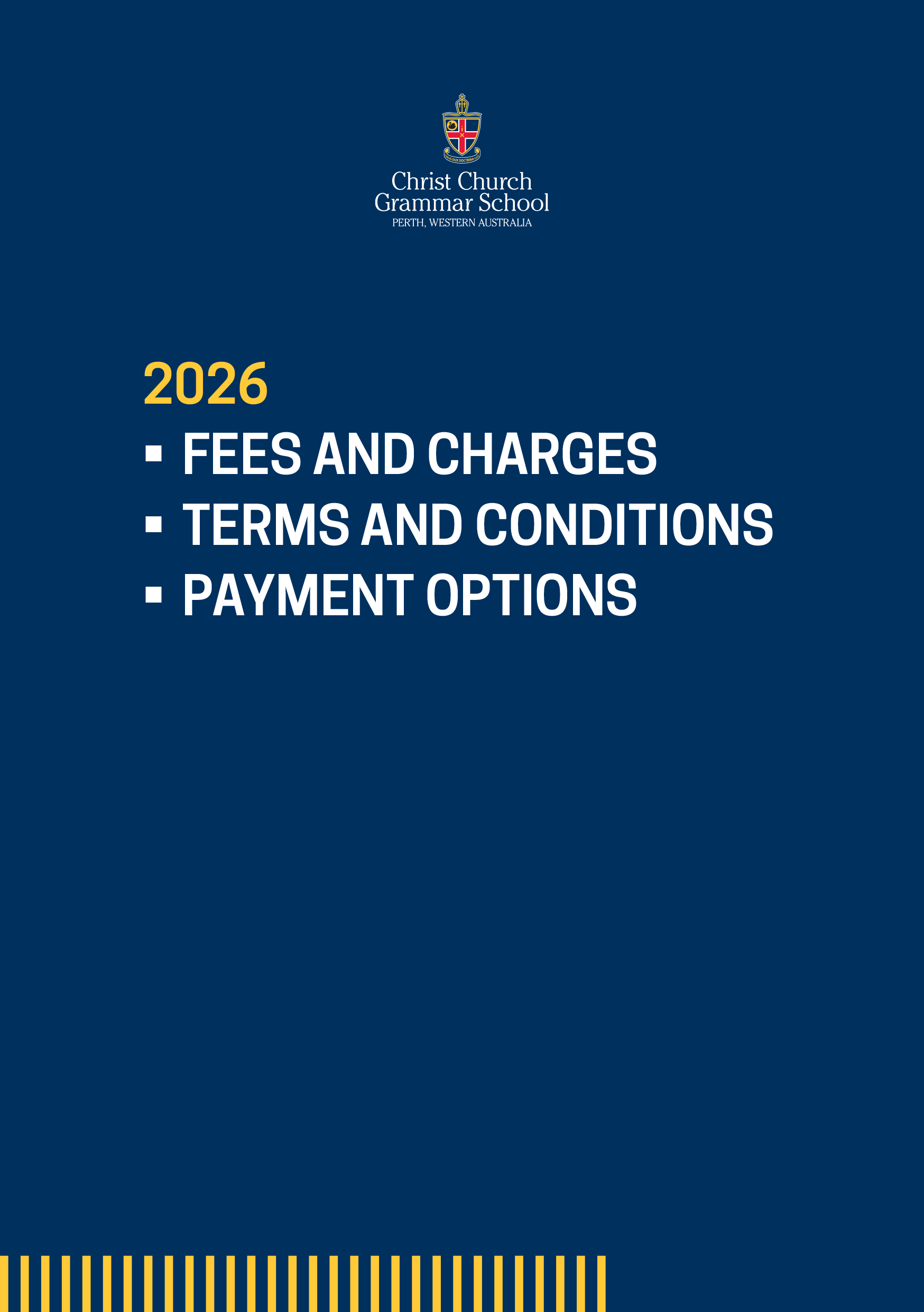 Schedule of Fees and Charges View our current Schedule of Fees and Charges, Terms and Conditions and Payment Options for Pre-Kindergarten to Year 12, which should be read in its entirety.