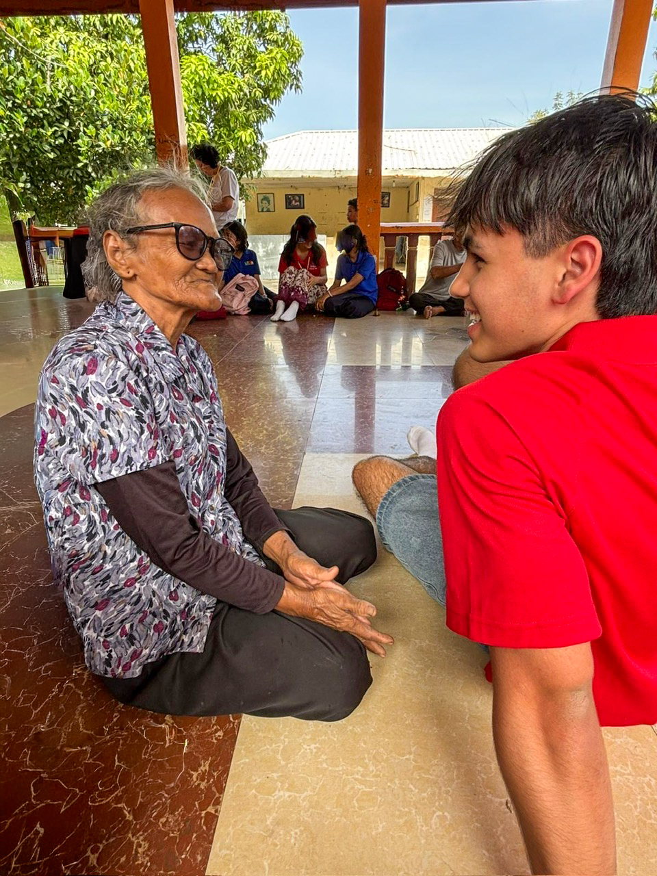 Throughout the trip, students taught English to local children, served meals to elderly residents and young people who might otherwise go without, and delivered Boxes of Hope filled with school supplies, toys and hygiene items to rural schools. They also spent time with the Grannies, respected elders who foster children and help preserve Cambodian traditions, sharing stories, laughter and meals.