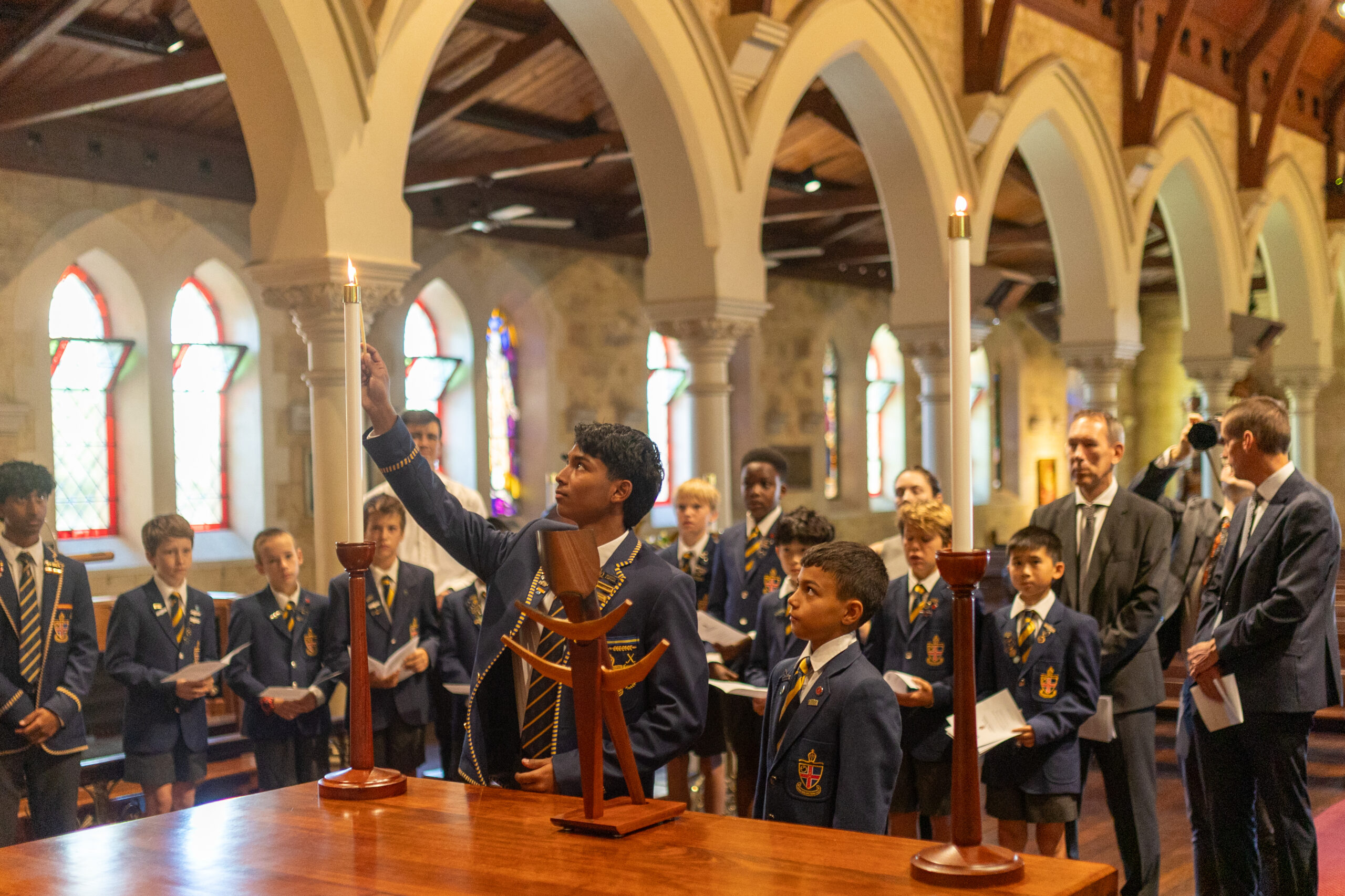 The day began with a Service of Rededication at Christ Church Claremont. Members of the official party, along with the School Prefects and Preparatory School leaders, attended the service, which was led by Archdeacon Peter Boyland. Through prayers, readings and the lighting of the Torch of Learning, we honoured the enduring spirit of the School. This tradition reflects our motto, “God is our leader, learning is our light,” reminding us that learning continues to guide and shape our shared purpose.
