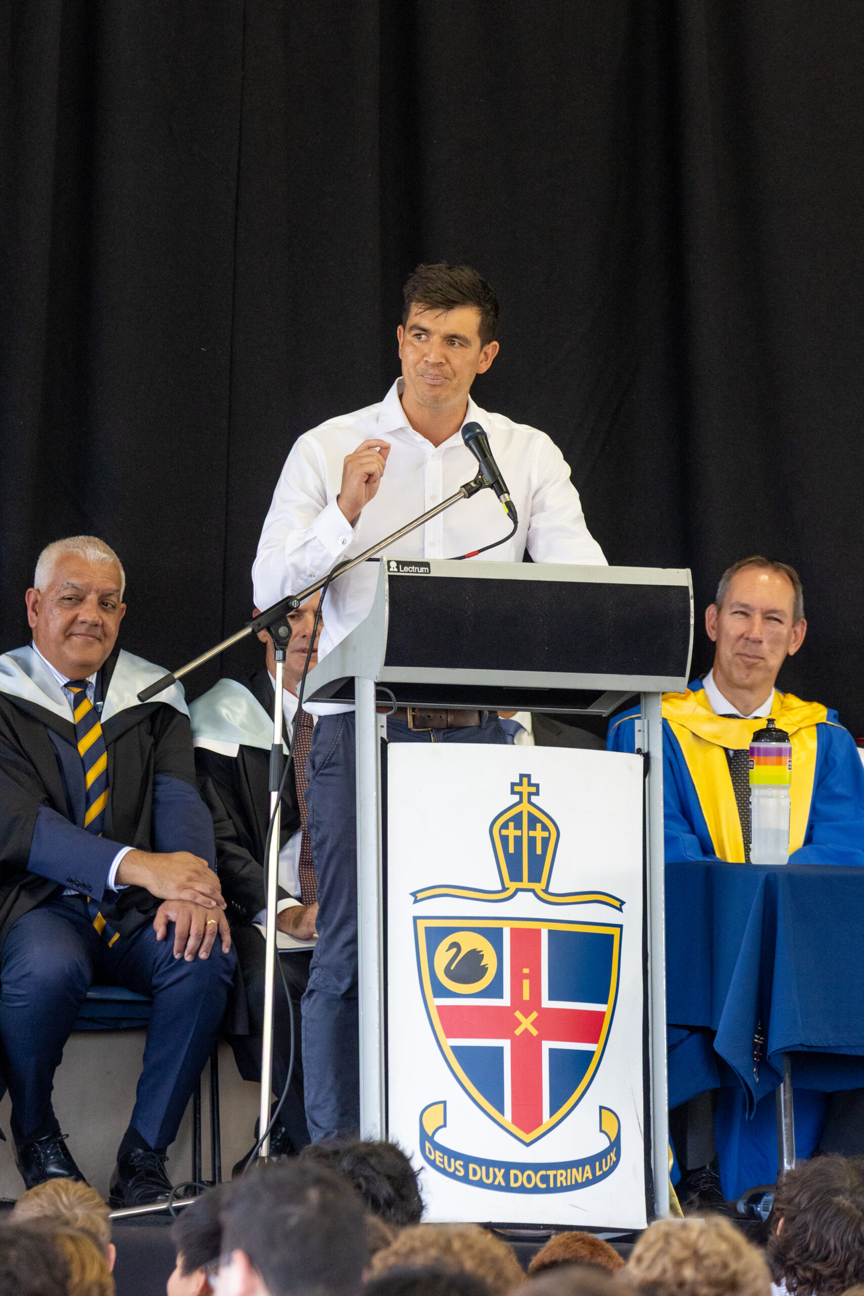 Following the service, the School community gathered in the Blue Gym to continue the celebrations. Our guest speaker, ultra-marathon swimmer Andy Donaldson, inspired students with reflections on perseverance, discipline and courage. Drawing on his achievement of becoming the first person to complete the Oceans Seven in a single year, he spoke about setting ambitious goals, embracing challenges, and showing resilience when striving for excellence, which are lessons that strongly connect with the journey of learning.